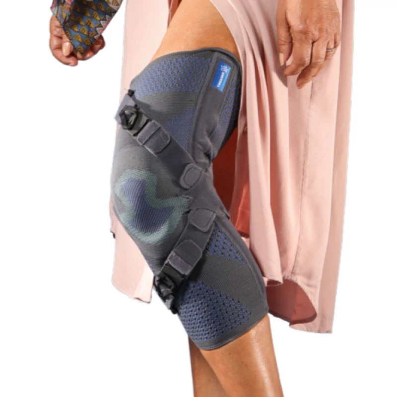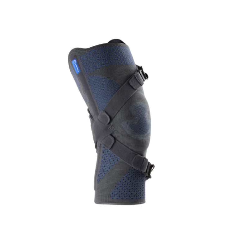 Az ortézis elasztikus, anatómiailag formált kötésből készült, amely fokozza a propriocepciót és enyhe kompresszióval támogatja a térd stabilitását. A merev oldalsín és rugalmas merevítő együttese biztonságos tartást nyújt, miközben a térdkalácsot egy ovális, anatómiai betét stabilizálja.
