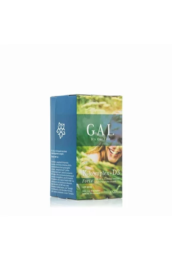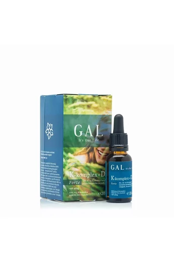 GAL K-komplex + D3 vitamin, 1000 mcg K-komplex + 4000 NE D3 x 60 adag D3-, K1- és K2-vitamin tartalmú étrend-kiegészítő cseppek Bioaktív MK7-tel. Termékünk a megfelelő felszívódás és stabilitás biztosítása érdekében RSPO-minősítésű (fenntartható gazdaságból származó, „orangután-barát”) pálma- és kókuszolajból nyert MCT-olajban oldva tartalmazza hatóanyagait természetes formájukban, azaz D3-vitamint, K1-vitamint és a K2-vitamin bioaktív MK-7-es szója allergént sem tartalmazó változatát. (Egyes termékek a K2 MK-7-nek a nem természetes, kevésbé hatásos „cisz-” formáját is tartalmazzák, a GAL K-komplex + D3 Forte csak a hatásos, természetes „transz-” formáját.) Adagolás: Napi 12 csepp fogyasztását javasoljuk, kiskanálra cseppentve, vagy az ételhez keverve. Legjobb a nap első étkezésekor fogyasztani. Folyadékba ne keverje!